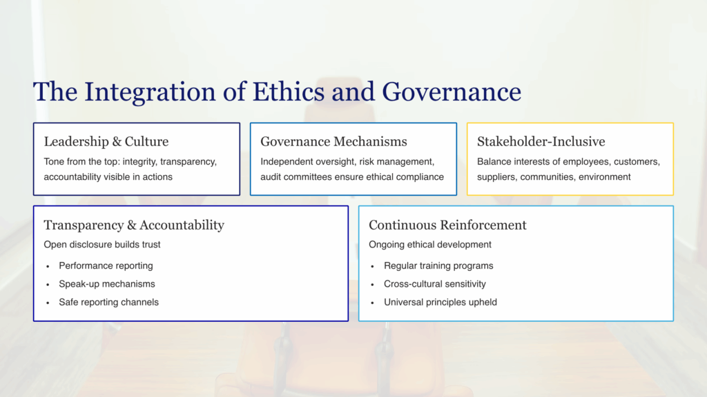 In essence, ethical governance is not only good ethics—it is good business. It protects reputation, enhances resilience, and ensures that success is both sustainable and legitimate.